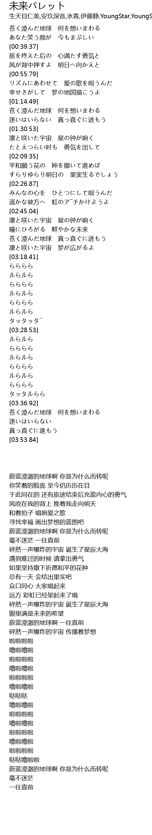 | [02:54.52] | 曈にひろがる 鲜やかな未来 |