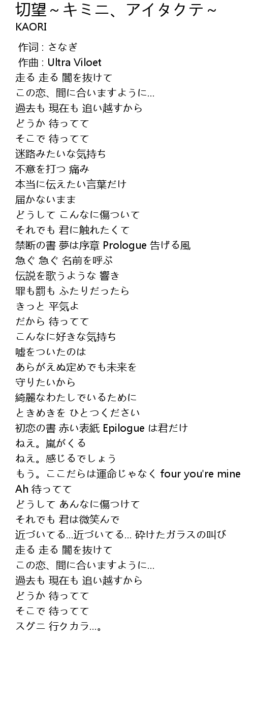 | [03:31.08] | もう。ここだらは運命じゃなく four you're mine |