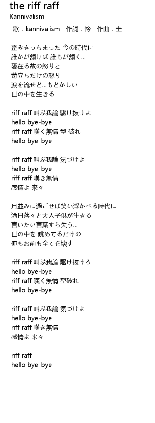 | 歌:kannivalism 作詞:怜 作曲:圭 | |
