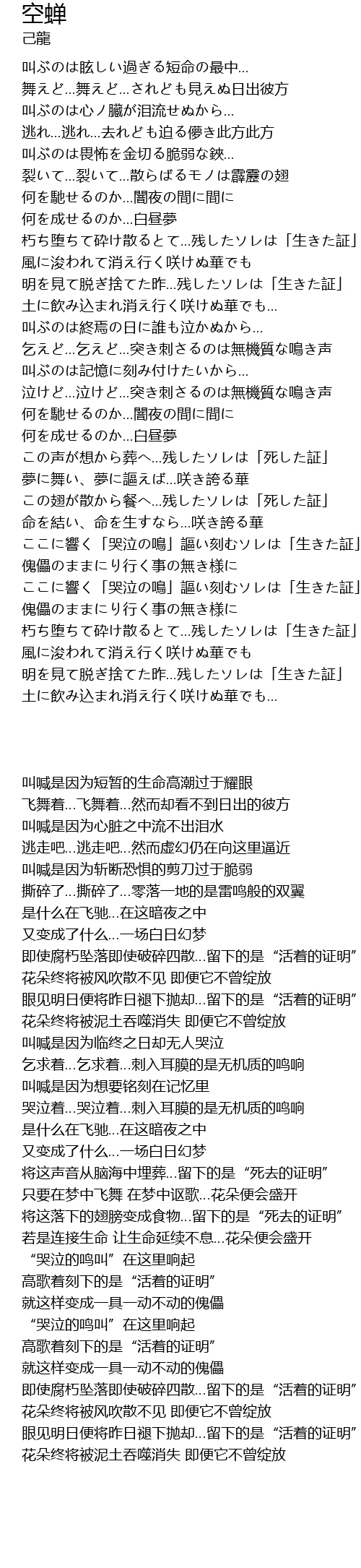 | [02:42.000] | この翅が散から餐へ...残したソレは「死した証」 |