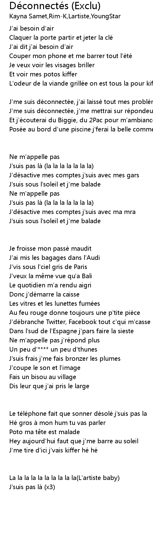 | J' me suis dé connecté e, j' ai laissé tout mes problè mes de coté | |