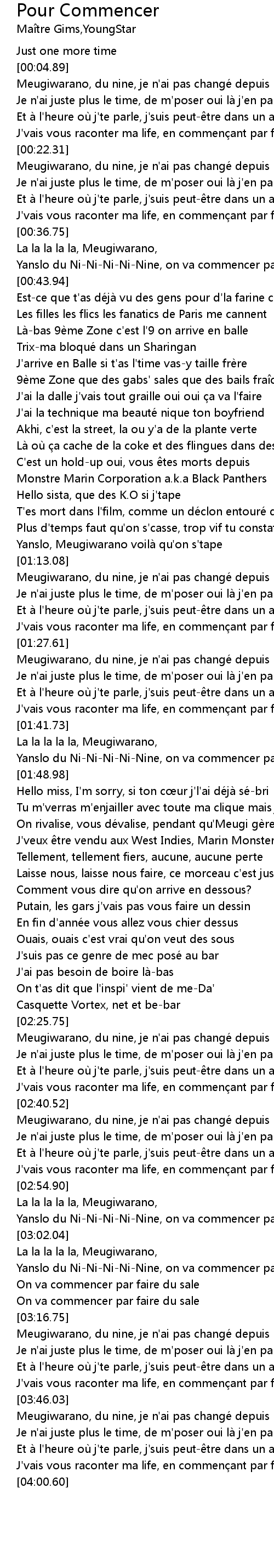 | [03:46.23] | Meugiwarano, du nine, je n' ai pas change depuis |