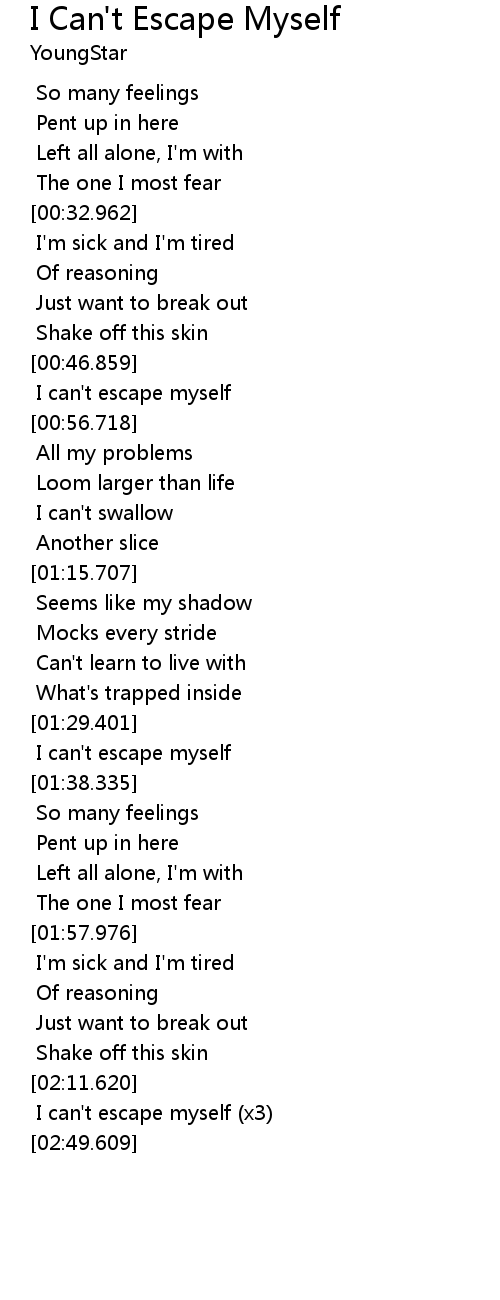 | [02:12.787] | I can't escape myself (x3) |