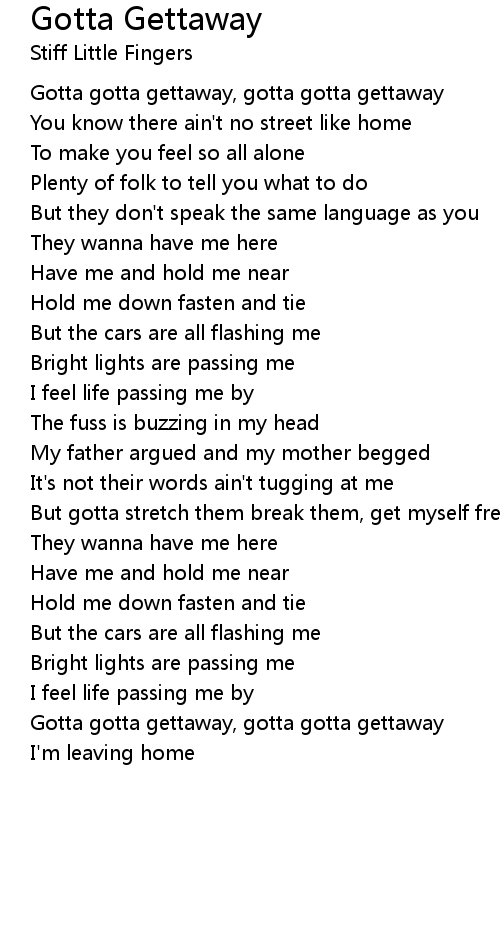 Gotta gotta gettaway, gotta gotta gettaway |
