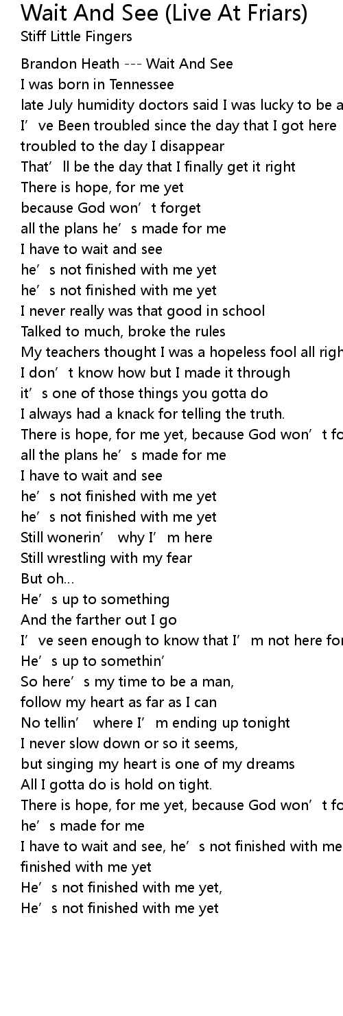 | [00:02.23] | Brandon Heath --- Wait And See |