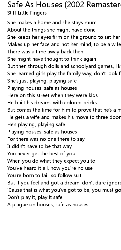Playing houses, safe as houses |