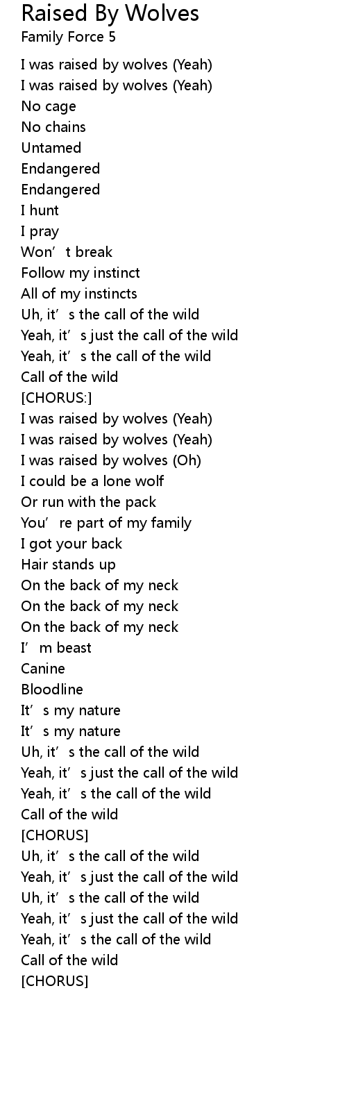 | I was raised by wolves (Yeah) | |