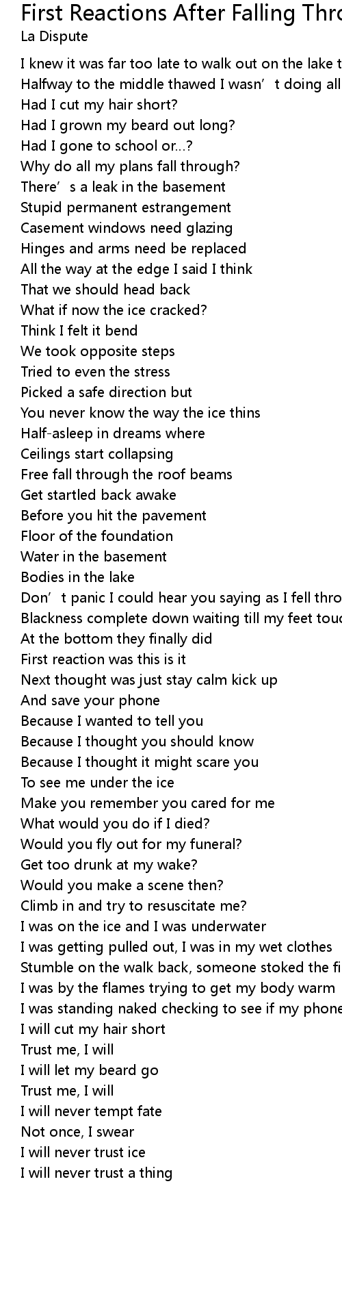 | Song | First Reactions After Falling Through The Ice |