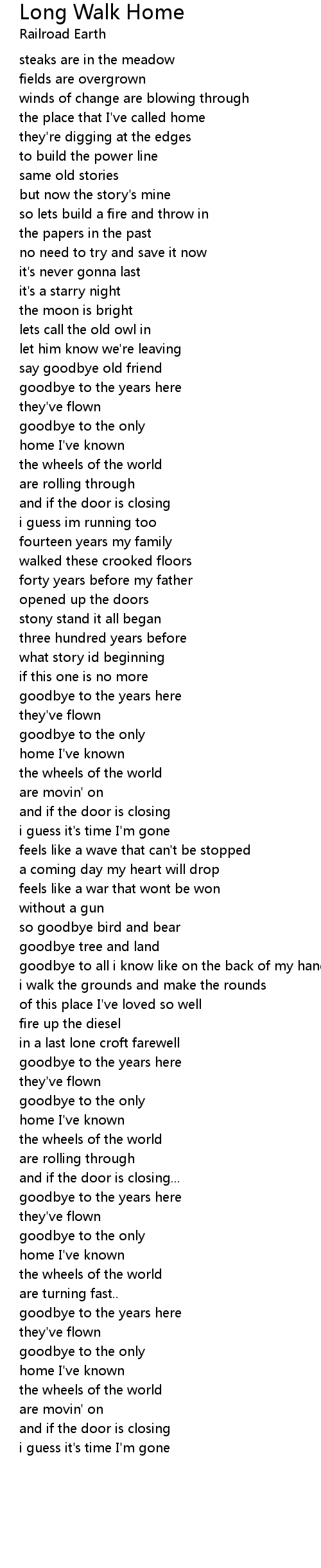 Long Walk Home Lyrics