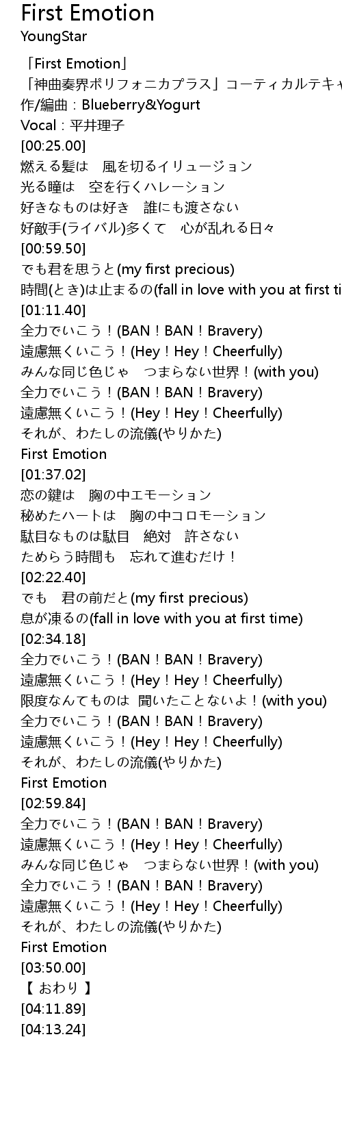 | [01:35.17] | First Emotion |