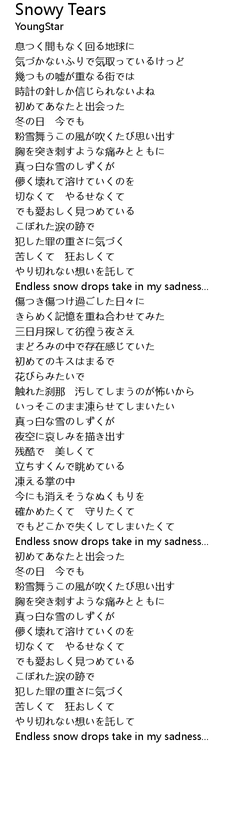 | [02:58.665] | Endless snow drops take in my sadness... |