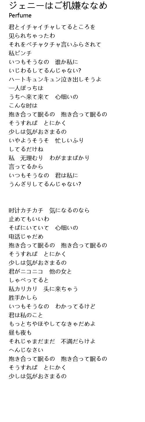 | Song | ジェニーはご机嫌ななめ |