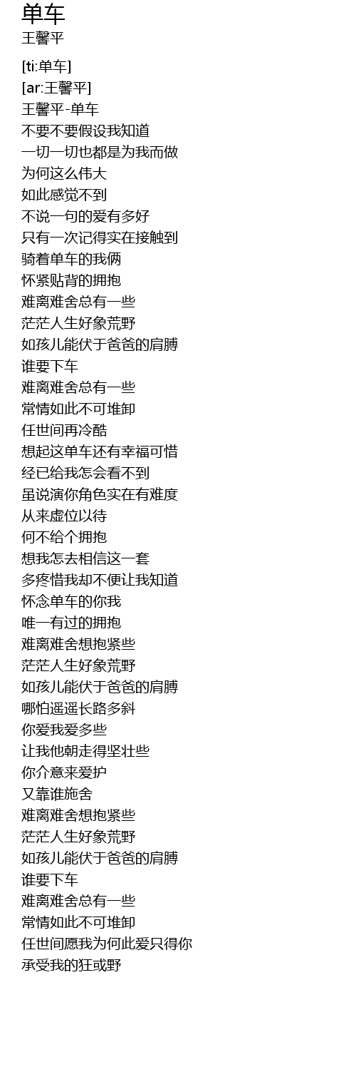 | [00:00.220] | 王馨平-单车 |