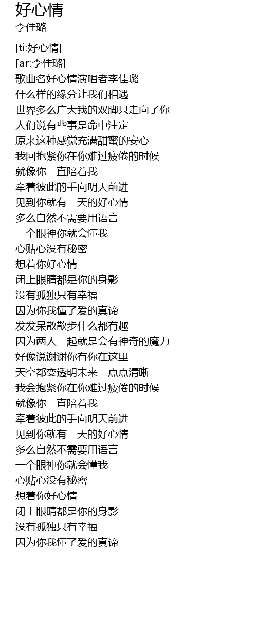 | [00:02.549] | 歌曲名好心情演唱者李佳璐 |