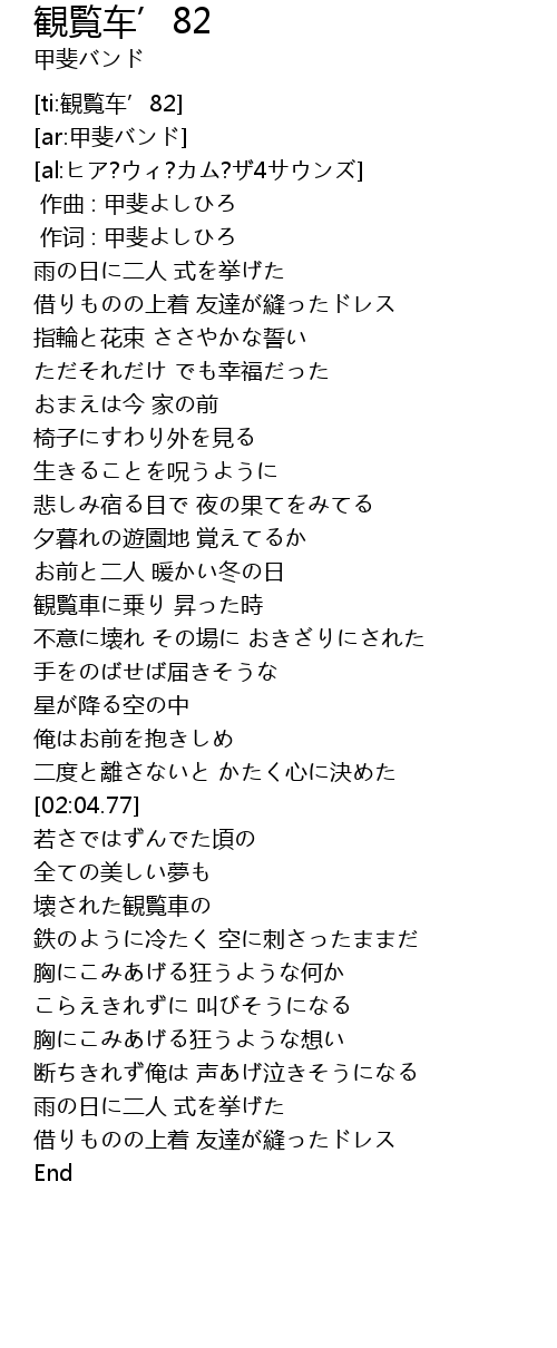 | [01:26.82] | 観覧車に乗り 昇った時 |