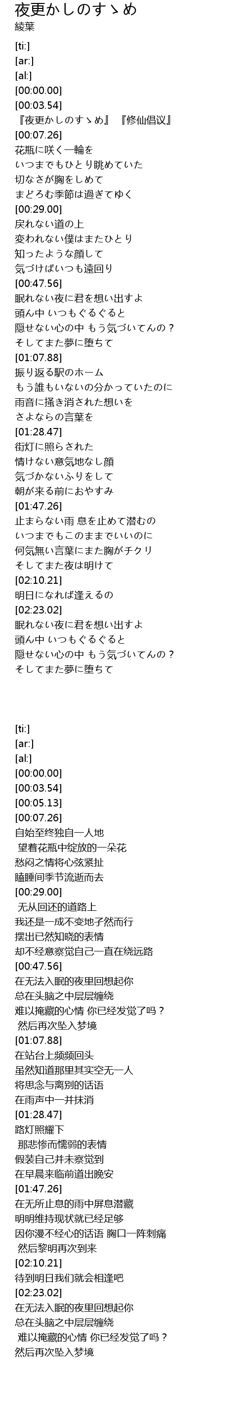 | [00:05.13] | 『夜更かしのすゝめ』 『修仙倡议』 |
