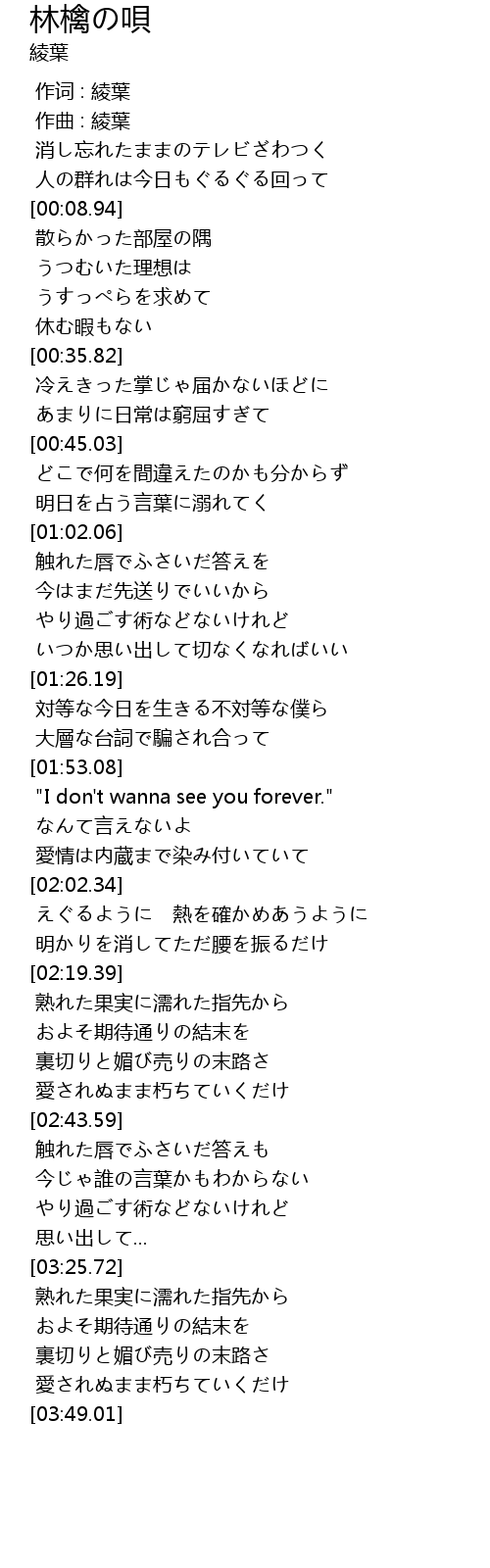 | [03:39.27] | 愛されぬまま朽ちていくだけ |