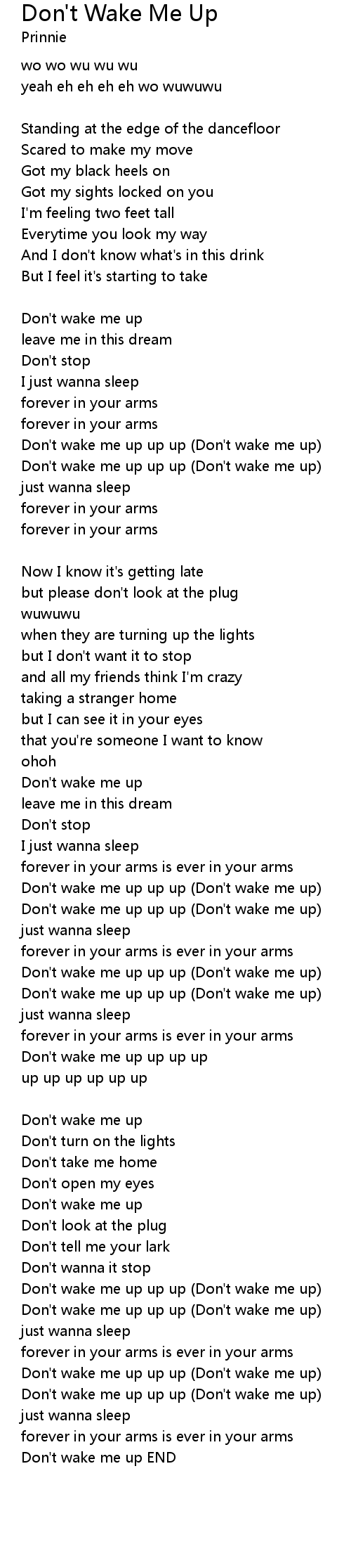 | Don't wake me up up up (Don't wake me up) | |