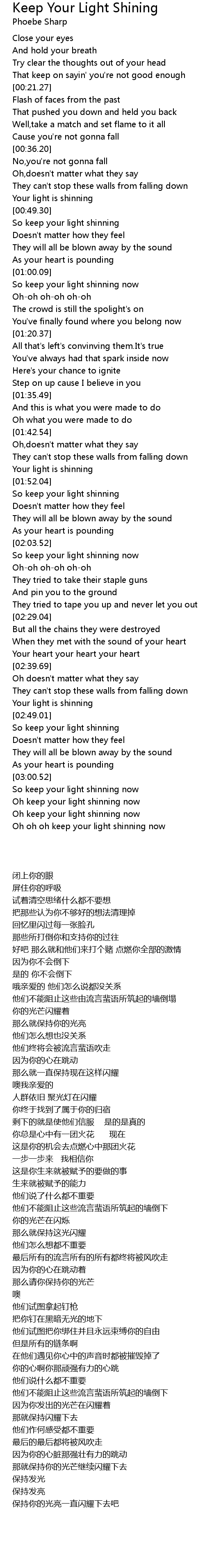 Oh oh oh keep your light shinning now |