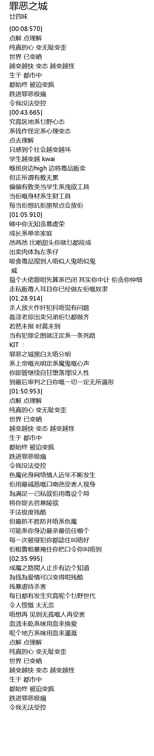 | [01:40.289] | 罪恶之城黑白太唔分明 |