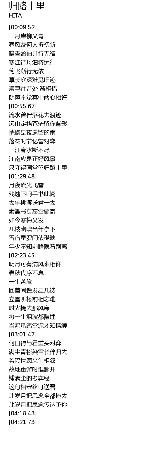 | [01:22.42] | 只守得画堂望归路十里 |