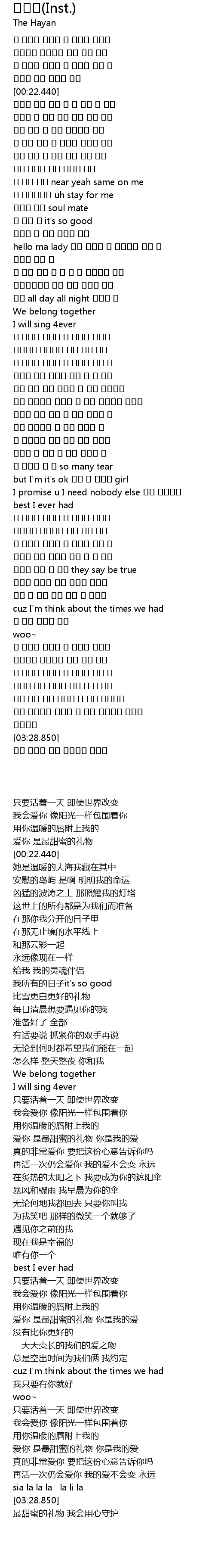 | [02:25.910] | 사랑해 제일 달콤한 선물 넌 내 사랑 |