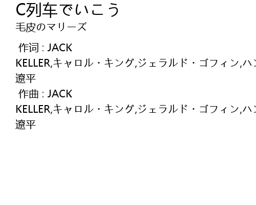 | [00:00.000] | 作词 : JACK KELLER,キャロル・キング,ジェラルド・ゴフィン,ハンク・ハンター,志磨 遼平 |