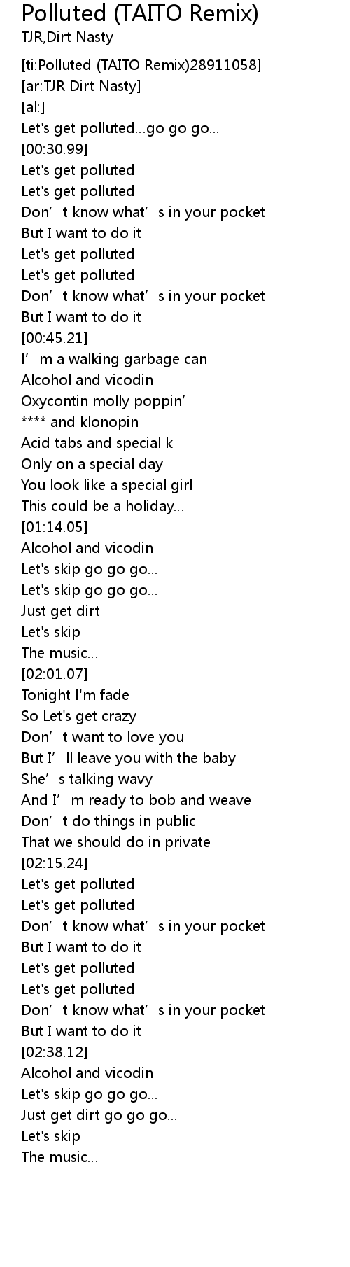 | [00:38.38] | Let' s get polluted |