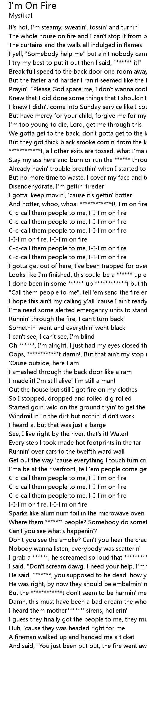 And hotter, whoo, whoa, ************t!, I'm on fire |