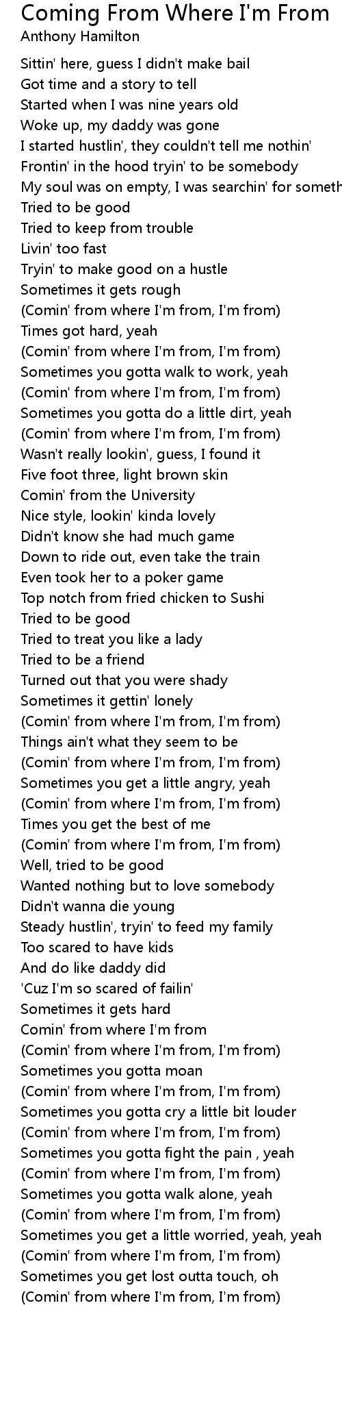 Comin' from where I'm from |