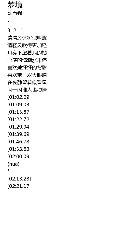 | [02:18.04][02:21.17] | * |