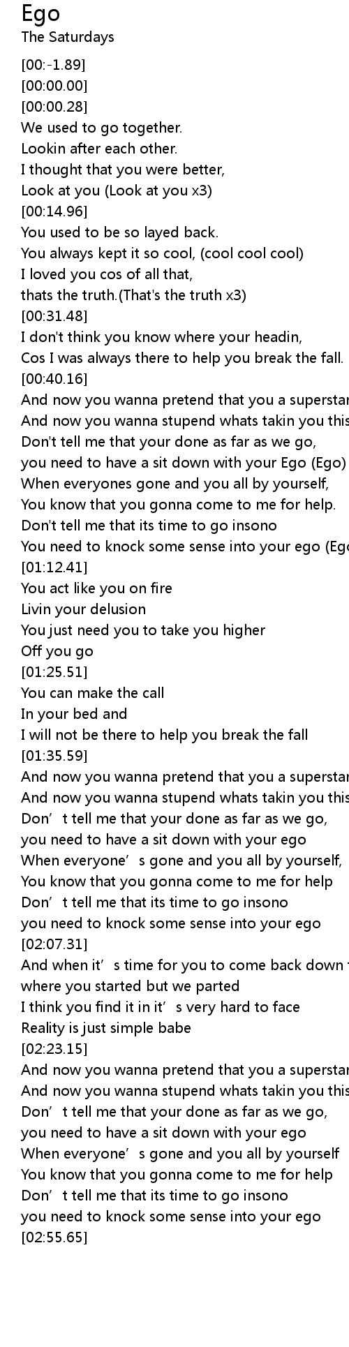 | [00:52.62] | you need to have a sit down with your Ego (Ego) |