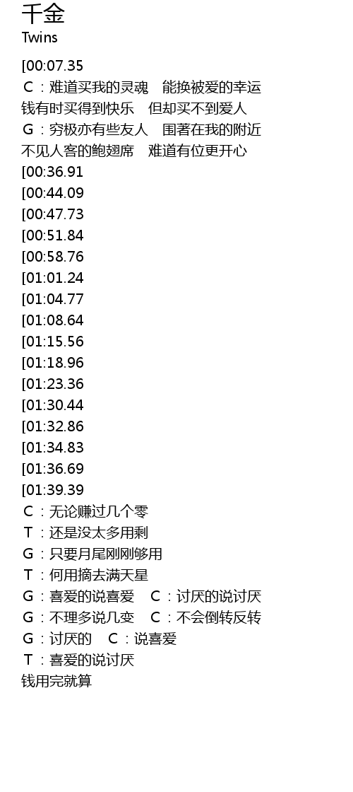 | [02:09.31][00:36.91] | T:一切买完 不知怎么算 |