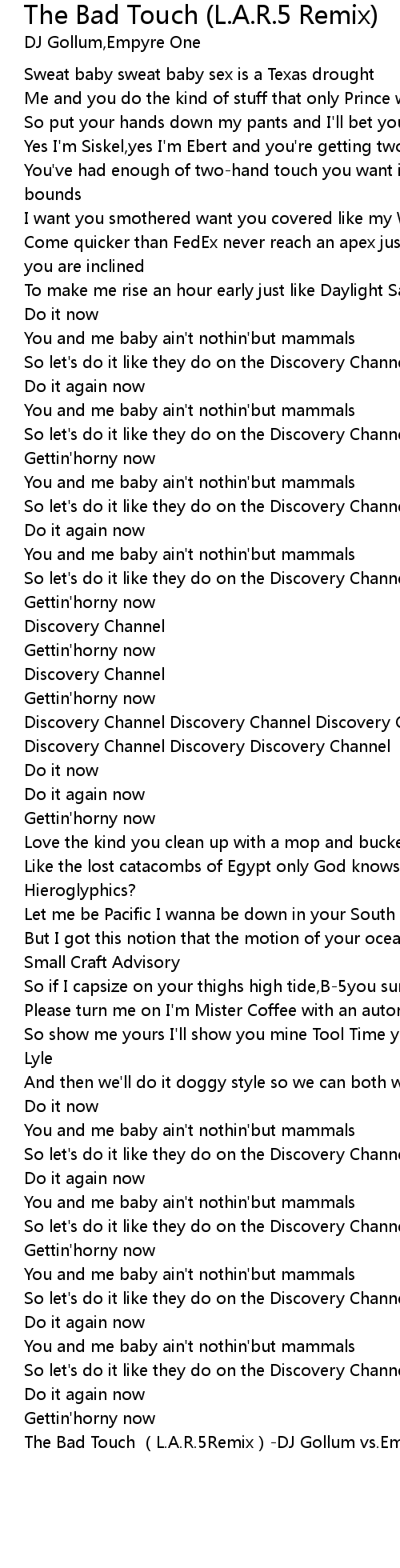 | [03:12.607] | The Bad Touch L. A. R. 5Remix DJ Gollum vs. Empyre One |