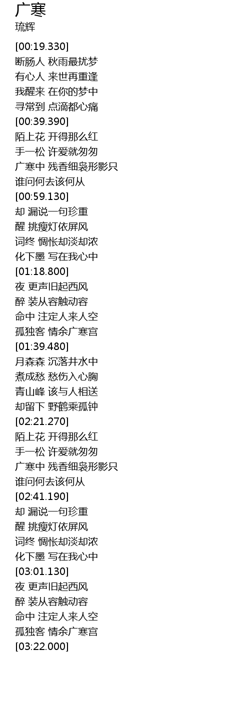 | [03:16.800] | gū dú kè qíng yú guǎng hán gōng |