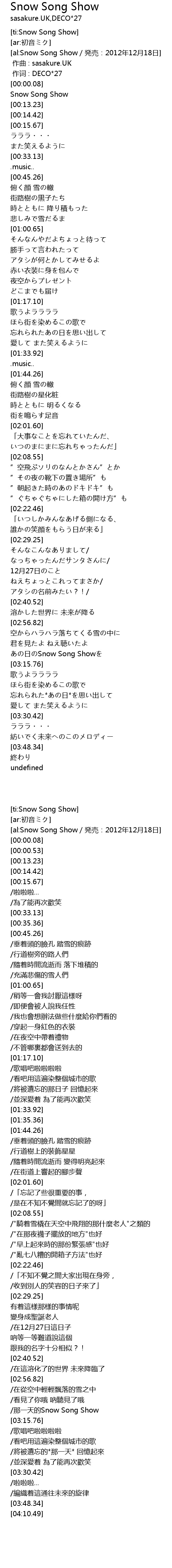 | [00:00.53] | Snow Song Show |