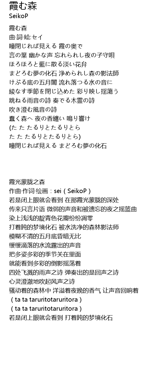 | [01:05.12] | まどろむ夢の化石 浄められし森の影法師 |