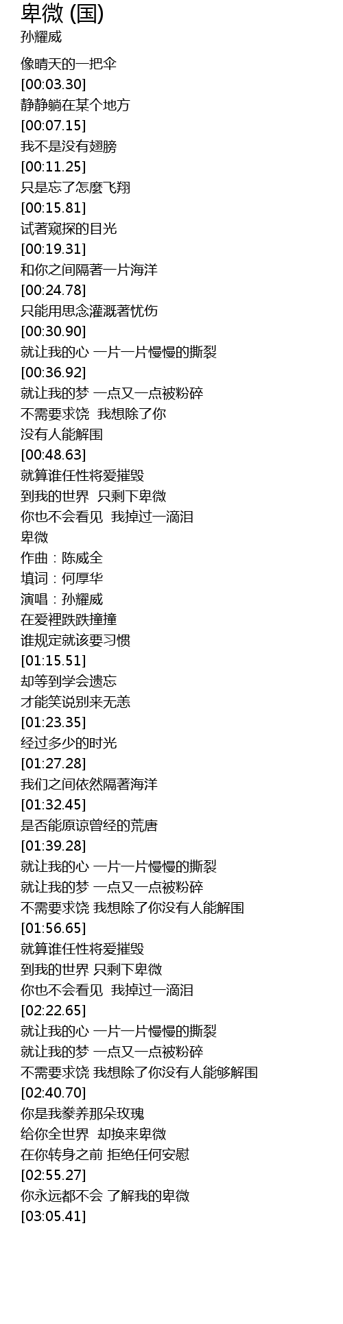 | [01:03.65] | 卑微 |