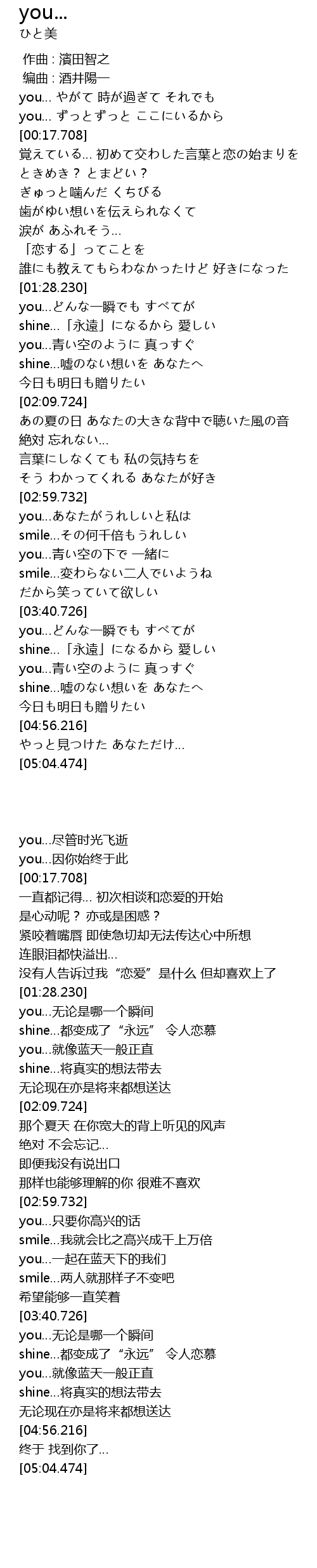 | [00:00.963] | you… やがて 時が過ぎて それでも |