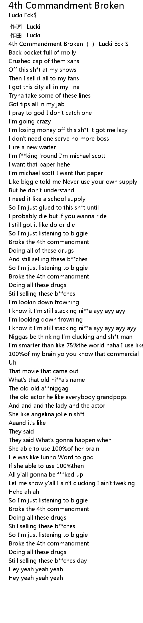 | [00:00.00] | 4th Commandment Broken Lucki Eck |