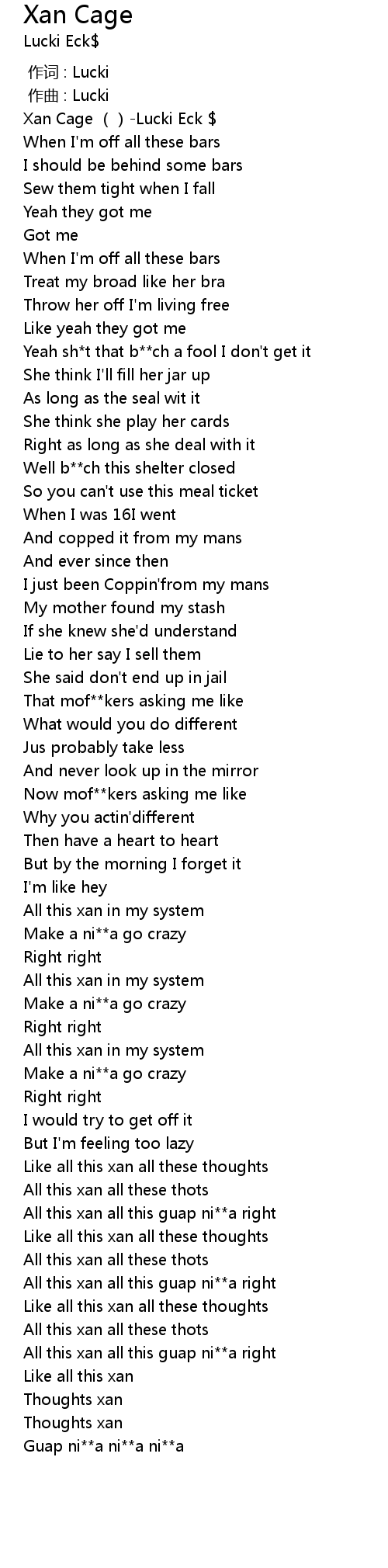| [00:00.00] | Xan Cage Lucki Eck |