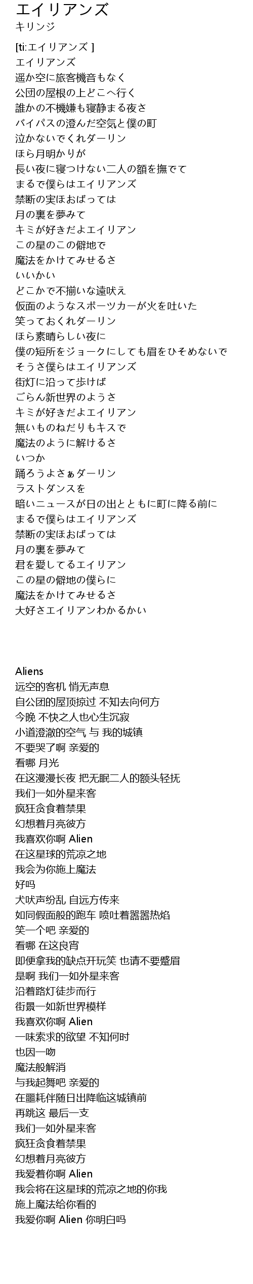 | [01:26.962] | まるで僕らはエイリアンズ |