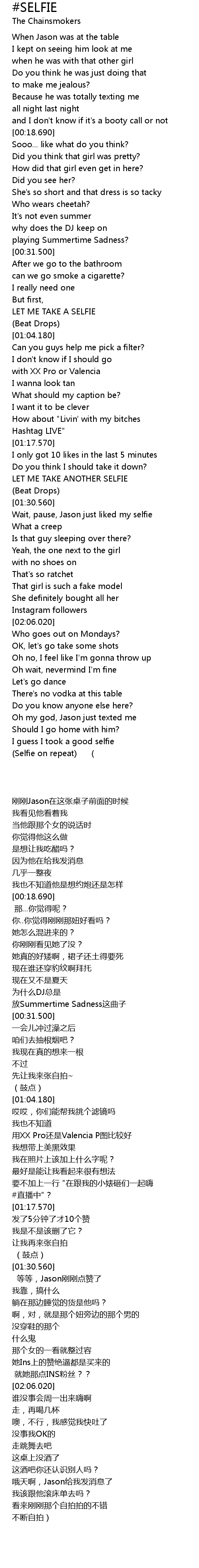 | [01:22.180] | LET ME TAKE ANOTHER SELFIE |