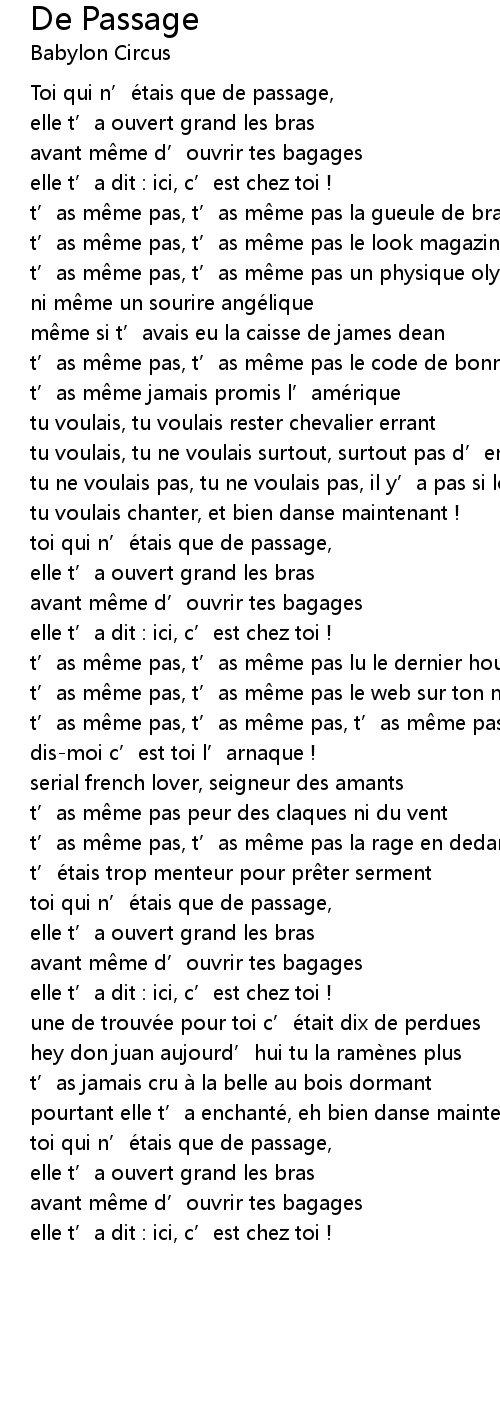 | t' as m me pas, t' as m me pas la rage en dedans | |