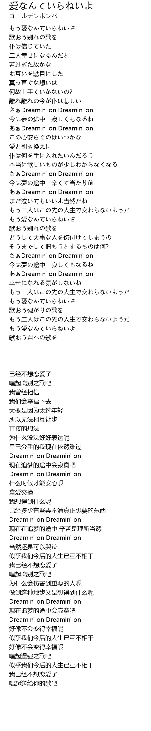 | Song | 爱なんていらねいよ |