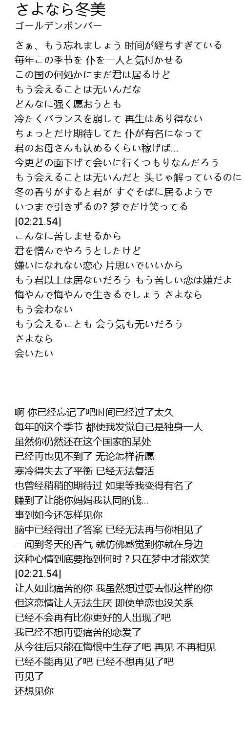 | [03:04.14] | 悔やんで悔やんで生きるでしょう さよなら もう会わない |