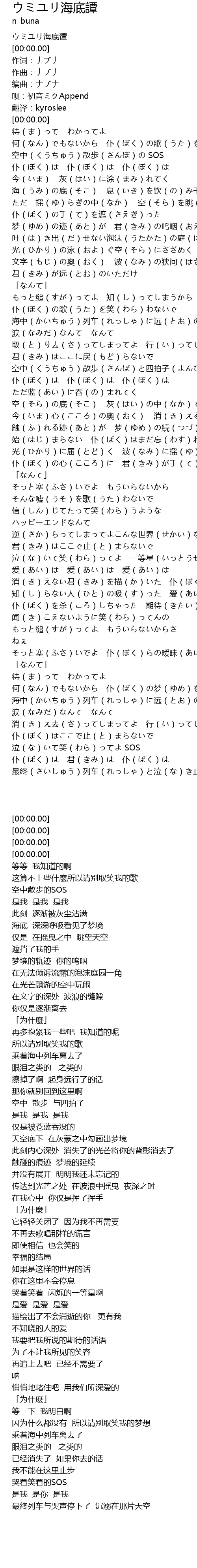 | [00:00.00] | ウミユリ海底谭 |