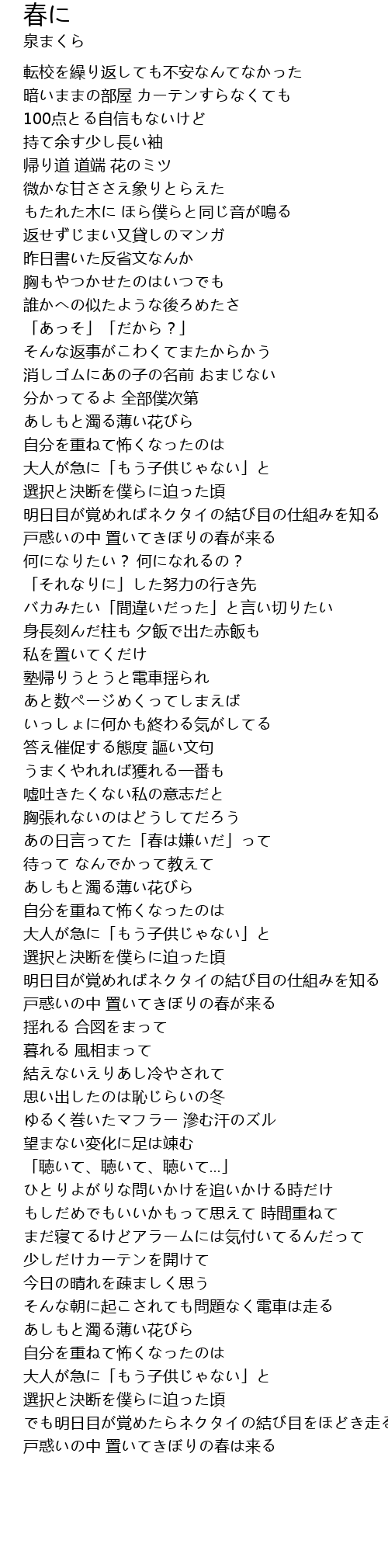 | Song | 春に |