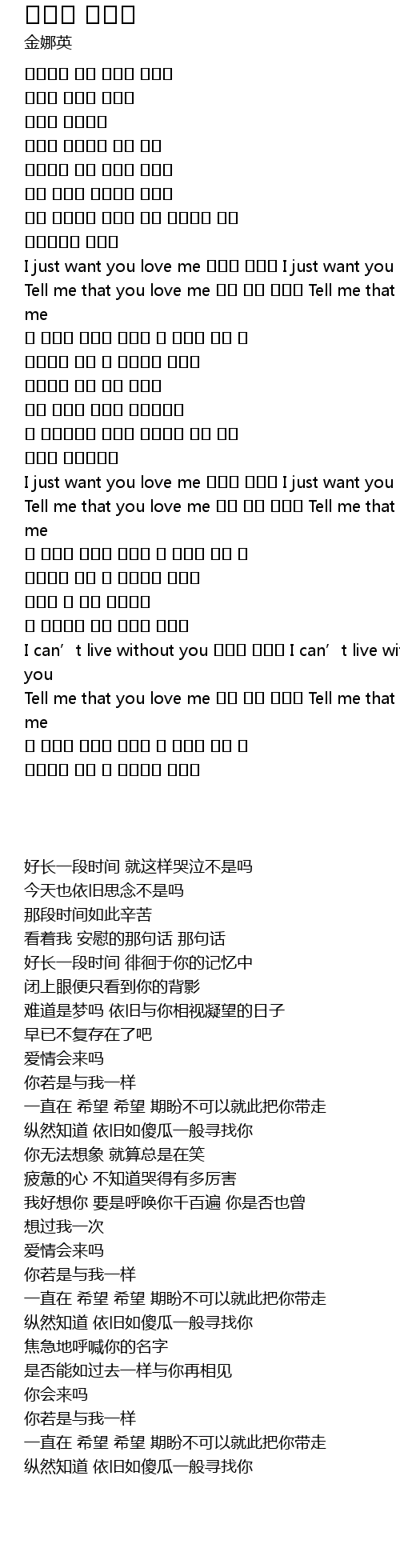 | [02:22.56] | I just want you love me 사랑이 올까요 I just want you love me |