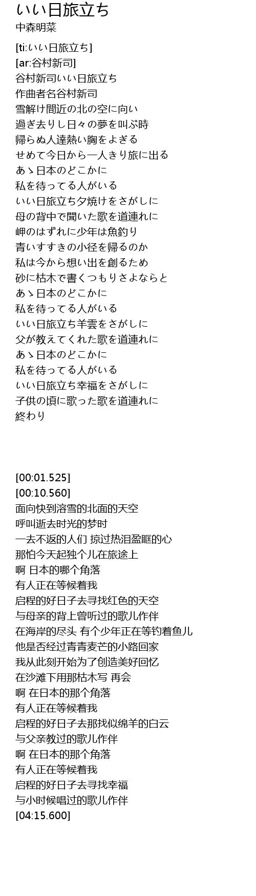 | [00:01.525] | 谷村新司いい日旅立ち |